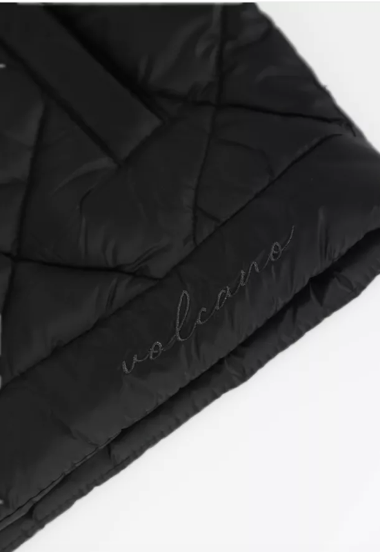 Prémiové detaily: Decentní výšivka nápisu "Volcano" v tónu barvy na spodním lemu.