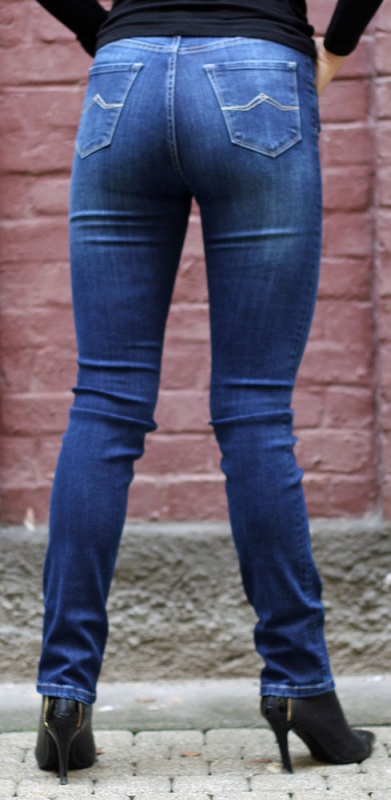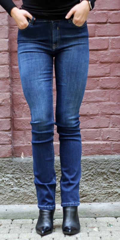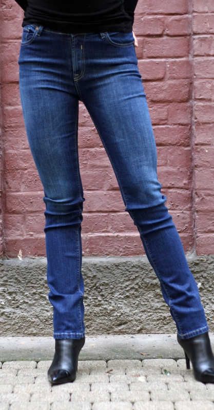 -Dámské džíny s vyšším pasem a rovnou nohavicí.