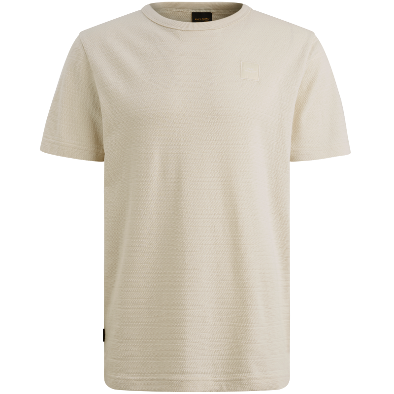 Tričko se vyznačuje jemným reliéfním vzorem, který je vytvořen přímo technikou pletení. Tento detail mu dodává prémiový charakter a vizuálně ho odlišuje od běžných hladkých triček. Na hrudi najdete decentní, barevně sladěnou čtvercovou nášivku s logem PME Legend, která nenarušuje čistý a minimalistický design.